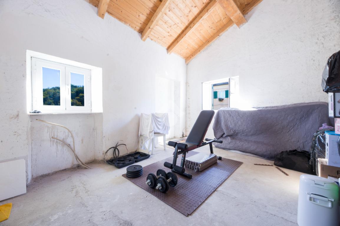 Il secondo piano offre una prima stanza d'ingresso ed una seconda sul lato ovest, attulamente tutto il sottotetto si presenta al grezzo e con travi a vista.